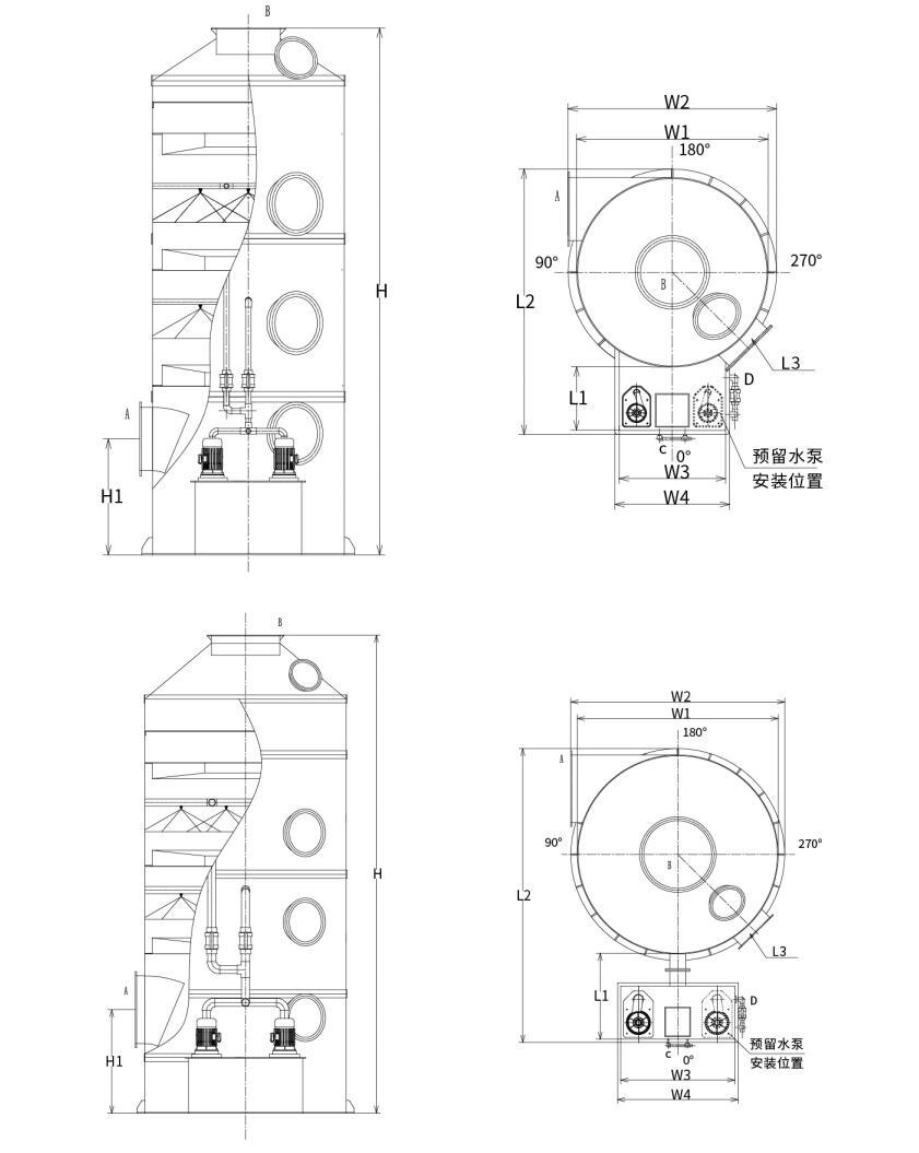Loại 2: Máy chà sàn lốc xoáy bồn nước loại rời (Đường kính tháp: Φ2500mm-Φ3500mm)