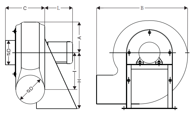 Biểu đồ kích thước quạt ly tâm chống ăn mòn FD